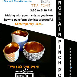 Create Contemporary Porcelain Pinch Pots - A two session Event and finished painted pieces for you or a perfect gift. Benefits of Cold Porcelain Clay? The learning technique is Suitable for many uses including pottery, ornaments, small deco for Christmas or even cake decoration because of its benefits. Air Dry: Cold porcelain air dries, so you don't need a kiln to cure it. Smooth Finish: It dries to a smooth, porcelain-like finish, which is ideal for detailed work. Translucency: It can be translucent when thin, adding a unique visual quality to your projects. Flexibility: It's flexible when wet, allowing for easy shaping and manipulation. Non-Toxic: Cold porcelain is generally considered non-toxic, making it safe for crafting, especially with children. Tea & Snacks + all materials included. The workshop is confirmed with 6+ participants. Book your interest. Class will be confirmed!